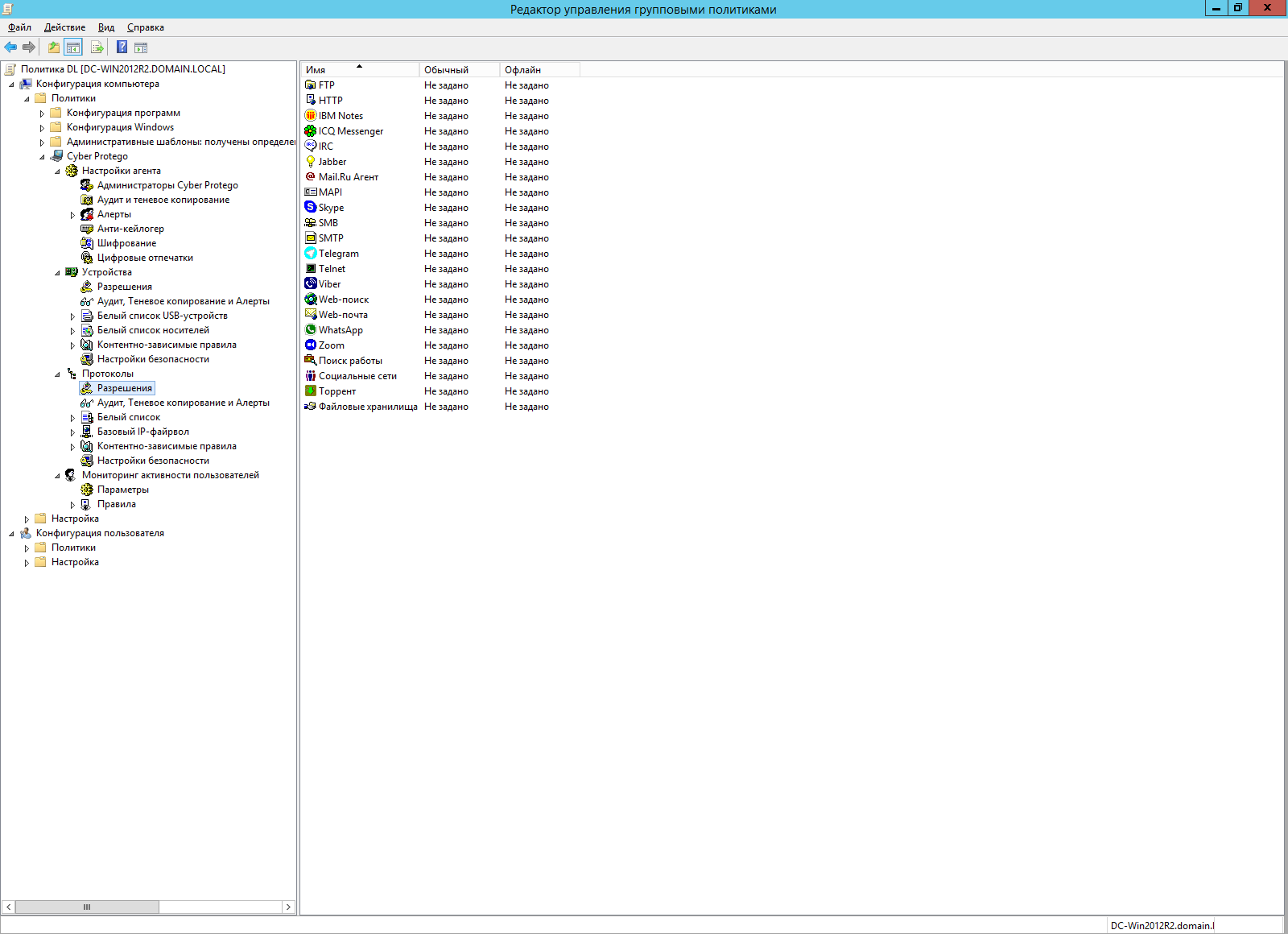 Кибер Протего обеспечивает высокоточный централизованный контроль множества каналов сетевых коммуникаций в Windows с возможностью задания раздельных прав контроля доступа, правил протоколирования и теневого копирования для чатов, отправки вложений и звонков для мессенджеров, сообщений и вложений в электронной почте. Агентская DPI-технология исключает зависимость контроля от типа браузера и сетевых приложений. Кроме того, реализованы контроль черновиков для почтовых сервисов, белые списки и встроенный файрвол.